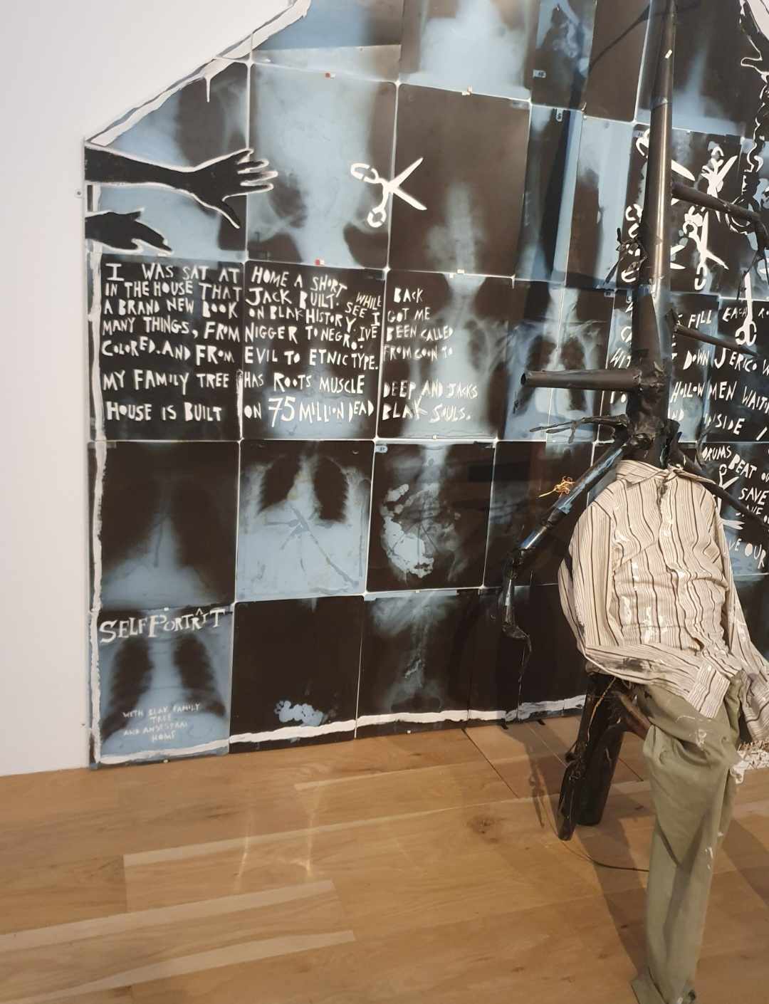 Donald Rodney: Visceral Canker, Nottingham Contemporary 2024This retrospective exhibition of black activist artist Donald Rodney at Nottingham Contemporary was testament to the valuable role he played in the UK art scene. It included a huge body of work spanning video, sculpture, found objects, installation, painting and photography. It referenced his battle with sickle cell anemia, racism, black masculine identity and colonialism. His voice is as relevant today as it was when he was making his work; and this is testament to the importance of the conversations he tried to hold. He was a pioneering Nottingham black artist, speaking out loudly about the inequality and racism in the art world and creating publications for peers and future black artists to help them navigate the system effectively. He was involved in his work in an extremely intimate way, with parts of his skin, photos of his medical scars and video pieces made during his time spent bedbound due to ill health included in his works. The visceral yet accessible nature of his art makes his work impactful and commands that you pay attention to what he is trying to communicate. I understand what it means to want to include parts of yourself, both literal and metaphorical in your work, and the power and resonance this can give to a piece. He wanted one of his installations to include his blood being pumped around colonial family crests painted on boards but wasn’t allowed due to concerns about this posing a health risk to members of the general public. An attitude which further highlighted the discrimination and endemic medical racism he and other black community members suffer. This reaction is in especially poor taste because the piece is talking about the blood of black slaves that built the British Empire. He consistently held a lens up to racist and harmful perceptions of black male identity; something that he suffered the impacts of throughout his life. One of his pieces involved multiple slide projectors illuminating cut up images of black make faces in collage on a large scale. As the projectors cycled through, an everchanging blurred mishmash of black faces appeared on the gallery wall, referencing the racism faced by black males through police photofit profiling. It also cleverly evoked curiosity about the man behind the nose, eyes and chin that lit up the wall. Who were they? And what parts of them were denied and hurt by toxic systemic beliefs? The time I spent talking with the gallery assistants highlighted what a massive undertaking it had been to collate and display his work. Not least because some of the mediums that he used are unique and therefore are devoid of script for preservation and display; for example a number of his paintings and sculpture include x-rays of his body gathered during treatment. I was particularly struck watching interviews of him by how gentle, jovial and earnest he seemed. In my mind and heart, it generated an even more poignant relationship with his audience. I left the gallery feeling a closeness to him. An empathy for his journey and admiration for his creativity and determination to tell his story and to connect with his audience. Photography was not allowed in some areas of the exhibition. Regrettably one of this areas included the wheelchair he sat in for a lot of his adult life that had been modified using motion sensors so that it could move without risk of collision, empty, around the gallery space. Carrying his ghost. Below are some of my favourite pieces that I could document. You can read more about his works and the exhibition at https://www.nottinghamcontemporary.org/whats-on/donald-rodney-visceral-canker/