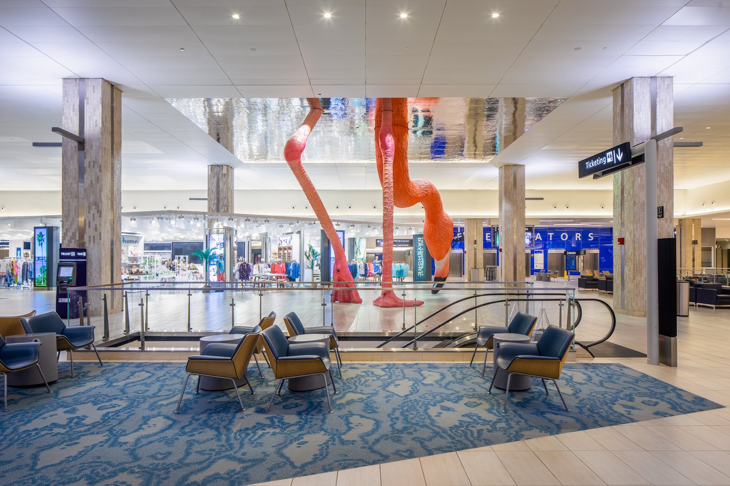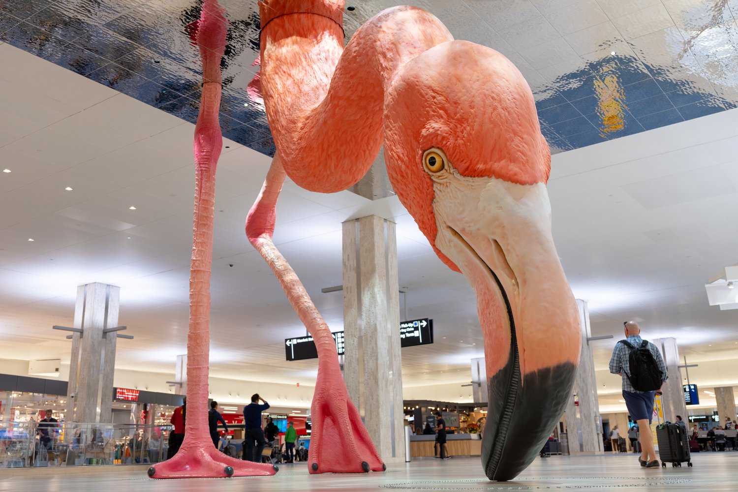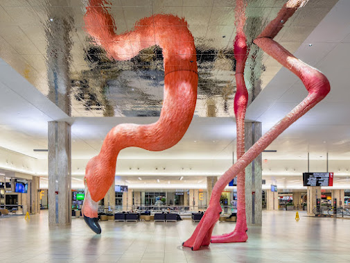 Matthew Mazzotta, ‘Home’, @ Tampa International AirportConsidering the opportunity to put a large scale VR installation in the castle led me to researching artists who have done similar. The first artist that came to mind was Matthew Mazzotta.  Taken from his press release: “Matthew Mazzotta has worked at the intersection of art, activism, and urbanism, focusing on the power of the built environment to shape our relationships and experiences. Matthew Mazzotta’s public projects have received international art and architecture awards such as the Architizer A+ Award, Azure’s AZ Award, The WAN Award, and six of his projects have been recognized by the Americans for the Arts. He has won four of the major international Architecture awards, as well as, “Architecture Project of the Year” by the Dezeen Awards at the Tate Modern in London. Flights arrive and depart from Tampa International Airport, full of travellers leaving their homes, returning back home, going to a new home, or simply to a place that feels like home. The concept of “home” is not only for people—Florida is also home to an abundance of wildlife. HOME is a site-specific art installation that gives travellers time and space to take a deeper look at a bird whose image appears across Florida—the flamingo. This floor-to-ceiling immersive installation gives viewers the impression they are underwater with the flamingo as it looks for food. The exaggerated scale of this pink bird transports us into its world and reminds us that we all share the same home.” Looking up, the viewer sees a ceiling made of a specialized surface that mimics water, while hidden projectors create water-like dappling light on the bird and floor. The scale of HOME is designed to be an exciting experience close up, as well as seen from the many vantage points throughout the entire terminal. The overall effect is one of wonder, contemplation, reflection, and amusement, bringing joy to those passing through the terminal on their way to their destination. HOME draws people into this immersive experience, where they will find themselves bathed in changing lights, posing with a giant bird, sharing photos, and enjoying being together in this whimsical and otherworldly atmosphere. Earlier this year, the big pink bird was named Phoebe after an international naming contest with 65,000 entries worldwide.” More information about his work can be found at https://www.matthewmazzotta.com/